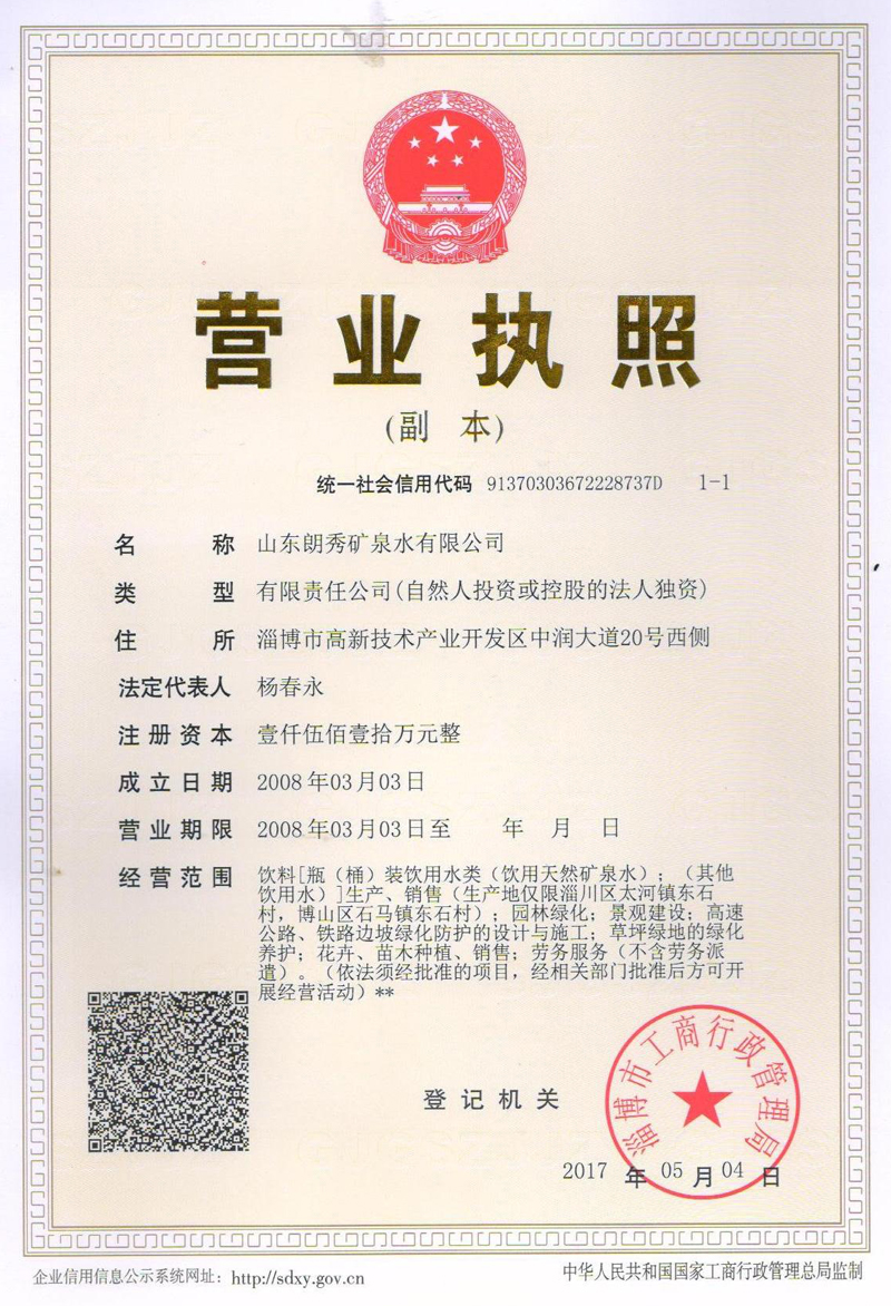 朗秀天然礦泉水,水源自